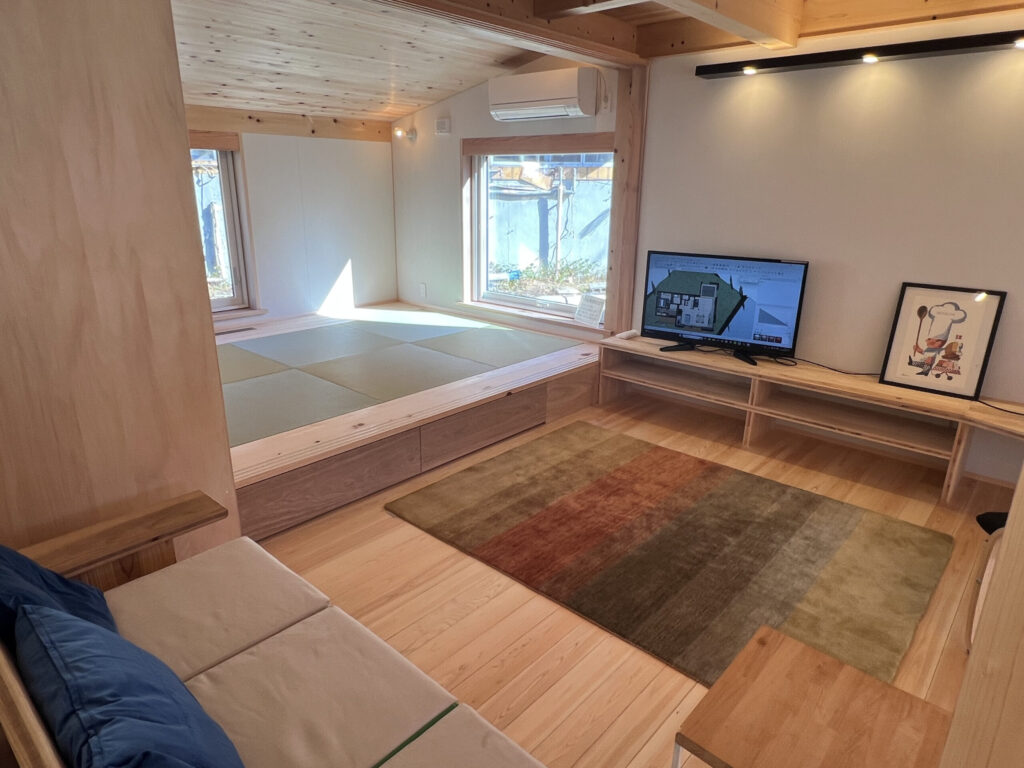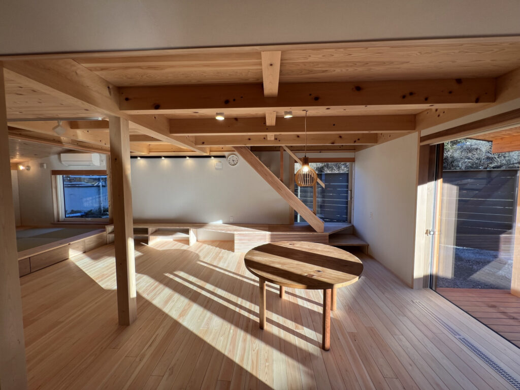 傾斜地を利用したスキップフロアの家 広く感じる工夫が随所に。天井から床まで木のぬくもりにこ…